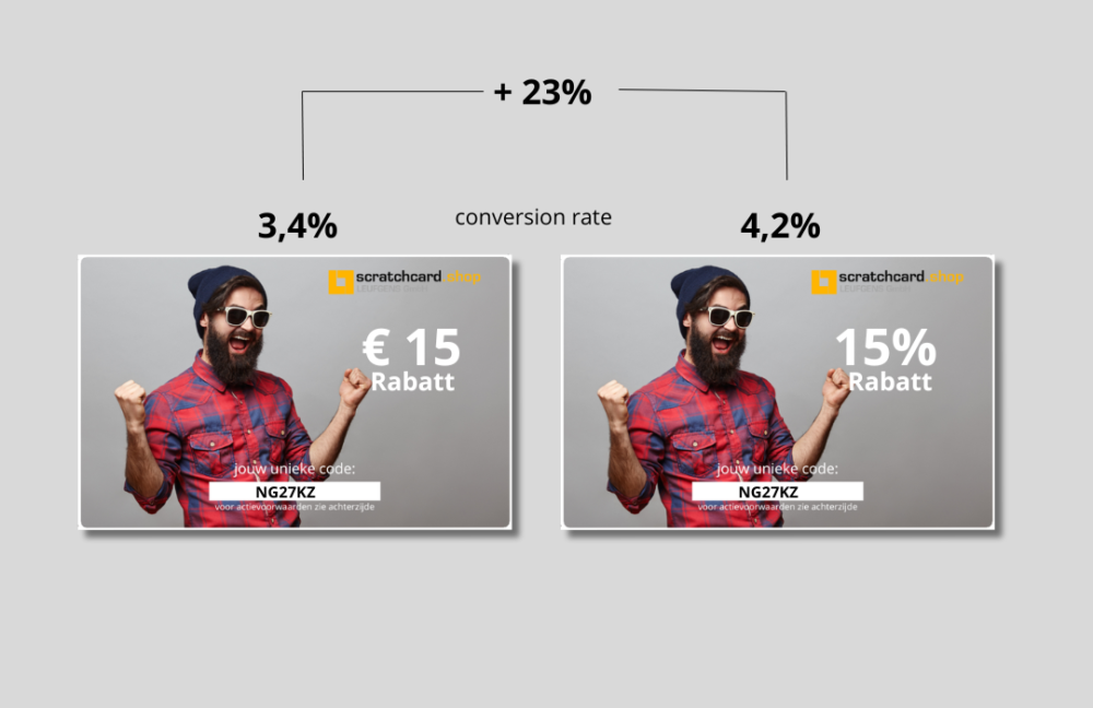 Auch wenn der finanzielle Wert identisch ist, erzielen Gutscheine mit prozentualem Rabatt bis zu 23 % mehr Conversion als Gutscheine mit einem festen Betrag.